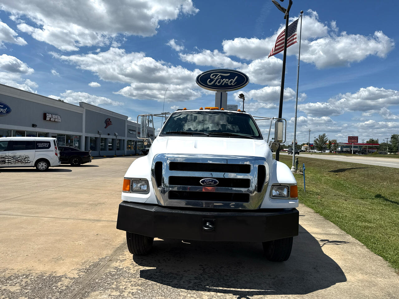 Buckle up and get ready to hit the road in style with this powerful 2010 Ford Super Duty F-650 Straight Frame! This beast of a truck is equipped with top-of-the-line features like Fleetguard fuel and water separator, Borg Warner fan clutch, and a Spicer driveshaft to ensure optimal performance on every journey. The 12-volt electrical system and 130-amp alternator keep things running smoothly, while the sleek chrome grille and bright head west coast style mirrors add a touch of flair to its rugged exterior. Inside, you'll find a comfortable interior with color-coordinated scuff plates, molded cloth headliner, and multifunction turn signal switch for added convenience. Safety is also a top priority with safety belts, emergency flasher, and dual electric horns. And the best part? A Carfax report is available for complete peace of mind. So whether you're hauling heavy loads or cruising down the highway, this Ford Super Duty is ready to tackle any adventure that comes its way!Visit Ray's Ford online at www.raysford.com to see more pictures of this vehicle or call us at 270-422-4901 today to schedule your test drive.