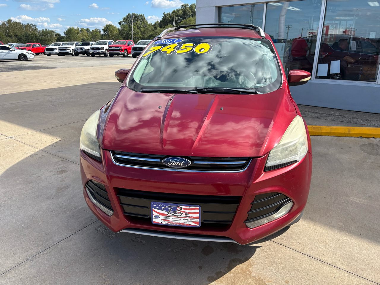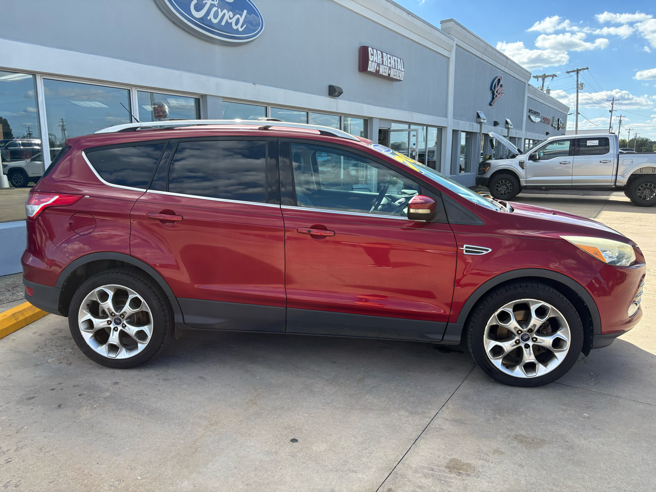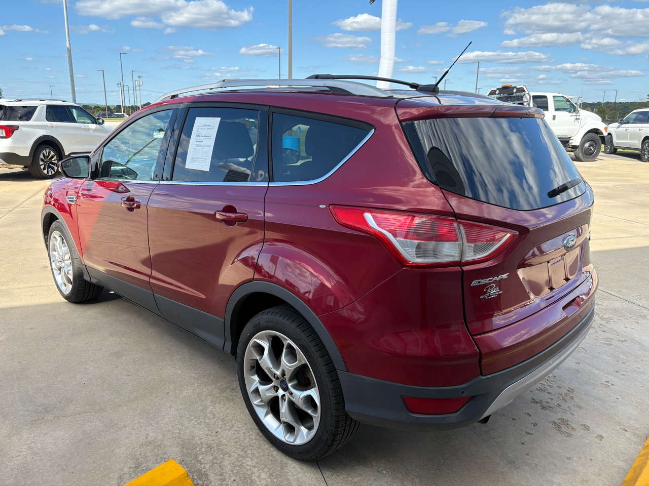 Step into luxury and adventure with this vibrant Red 2013 Ford Escape. Equipped with a powerful 2.0L I4 EcoBoost engine, four-wheel drive capability, and sleek 19" premium painted aluminum wheels, this Escape is ready to take you on your next journey. The chrome accents, fog lamps, and body-colored heated power mirrors with memory add a touch of elegance to its sporty exterior.Inside, you'll find a spacious cabin with MyFord Touch technology, ice blue lit gauge cluster, and ambient lighting for a modern driving experience. Stay comfortable with dual electronic automatic temperature control and heated seats, and enjoy convenience features like remote start and a universal garage remote. Safety is a top priority with front dual-stage airbags, safety canopy airbags, and a MyKey system to give you peace of mind on the road.