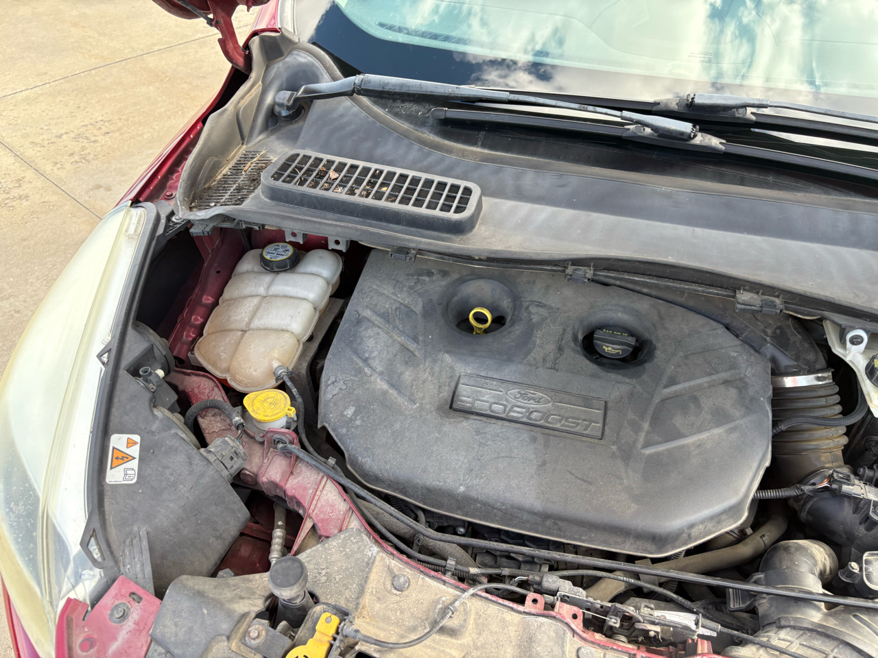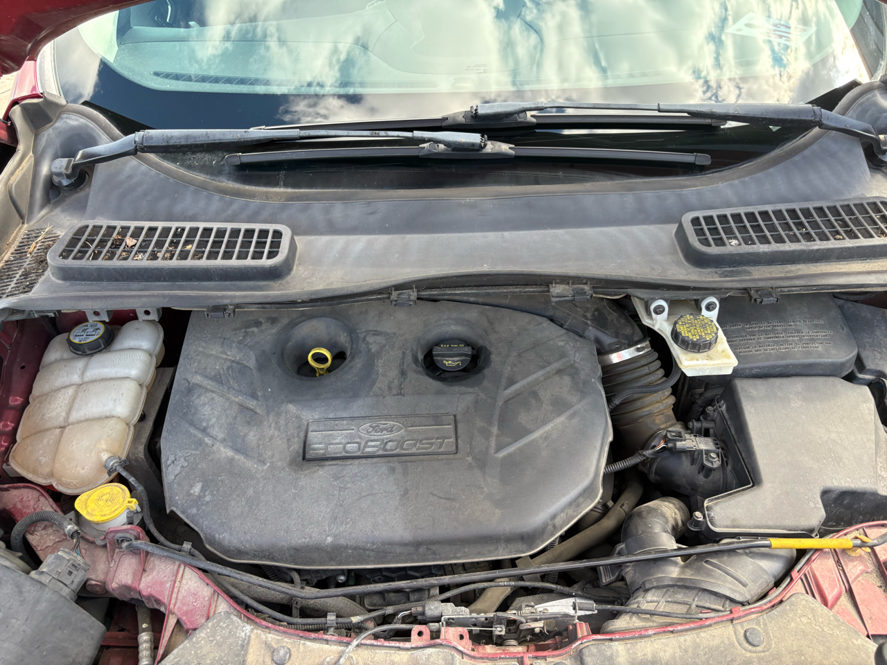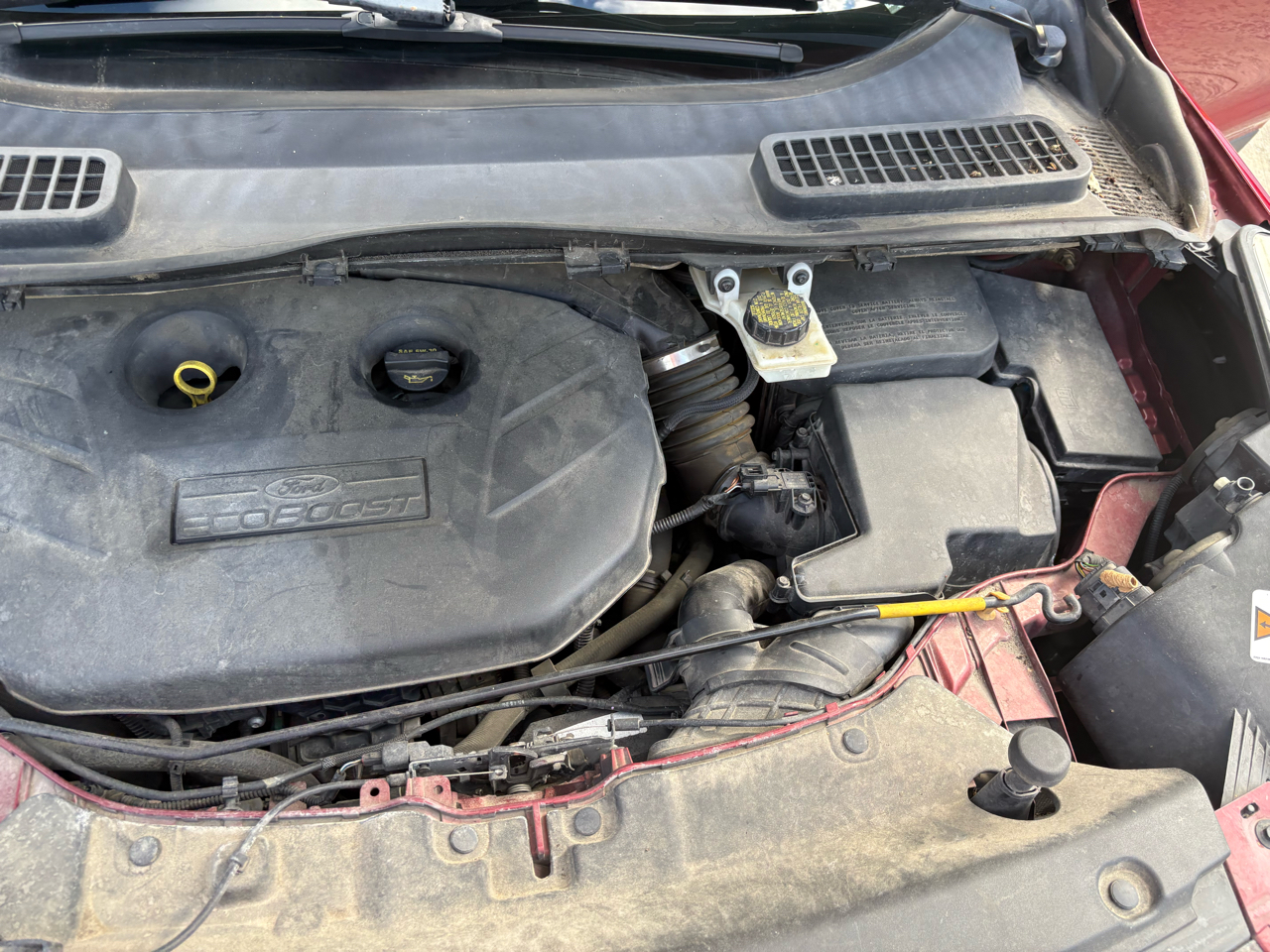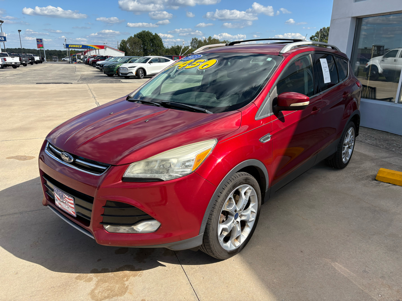 Step into luxury and adventure with this vibrant Red 2013 Ford Escape. Equipped with a powerful 2.0L I4 EcoBoost engine, four-wheel drive capability, and sleek 19" premium painted aluminum wheels, this Escape is ready to take you on your next journey. The chrome accents, fog lamps, and body-colored heated power mirrors with memory add a touch of elegance to its sporty exterior.Inside, you'll find a spacious cabin with MyFord Touch technology, ice blue lit gauge cluster, and ambient lighting for a modern driving experience. Stay comfortable with dual electronic automatic temperature control and heated seats, and enjoy convenience features like remote start and a universal garage remote. Safety is a top priority with front dual-stage airbags, safety canopy airbags, and a MyKey system to give you peace of mind on the road.